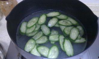 3. 热锅凉油,放入小赖瓜片,翻炒至半熟。